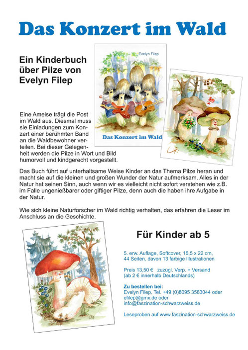 Hier kannst Du dir schöne Ausmalbilder aus dem Buch "Das Konzert im Wald" von Evelyn Filep ausdrucken. In dem Buch steht eine tolle Geschichte über verschiedene Pilze und was diese zusammen auf einem Konzert erleben.